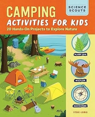The real secret to how to camp with kids without meltdowns? Keep them busy! This brilliant Camping Activities for Kids book includes 20 hands-on projects like making leaf art, nature scavenger hunts, and simple science experiments using items from the forest floor.