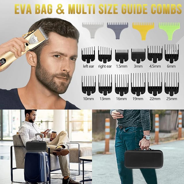 The Professional Hair Clippers Hair Trimmer for Men Set checks all these boxes and more. With its ergonomic design, low noise motor, and versatile attachments, it’s designed for beginners and pros alike.