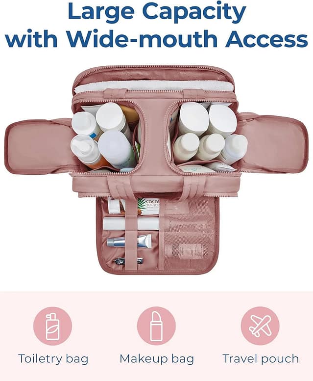 Back to our favorite pick — this puffy pink travel toiletry bag is more versatile than it looks. Whether you’re heading to a beach resort, business trip, or backpacking across Europe, it adapts to your needs.