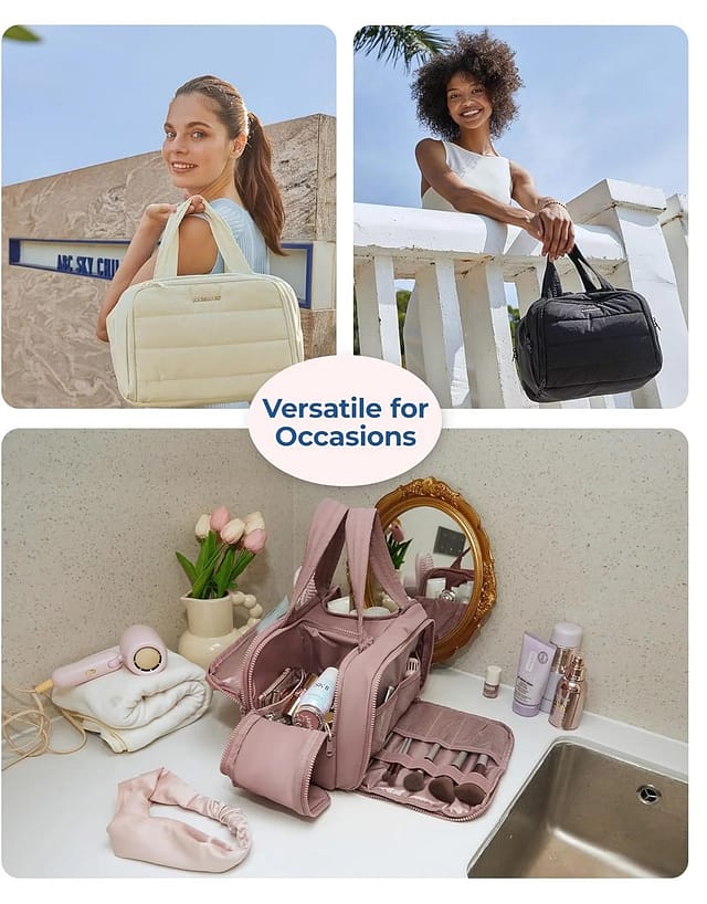 Back to our favorite pick — this puffy pink travel toiletry bag is more versatile than it looks. Whether you’re heading to a beach resort, business trip, or backpacking across Europe, it adapts to your needs.