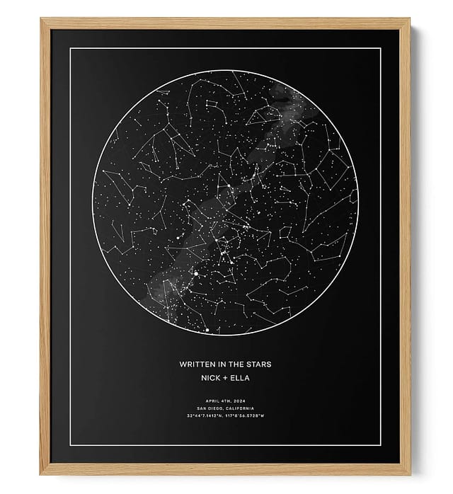 Set in a sleek black frame, this star chart becomes an emotional centerpiece in any home. It’s ideal for both men and women, making it a standout among personalized gift ideas that show you care.